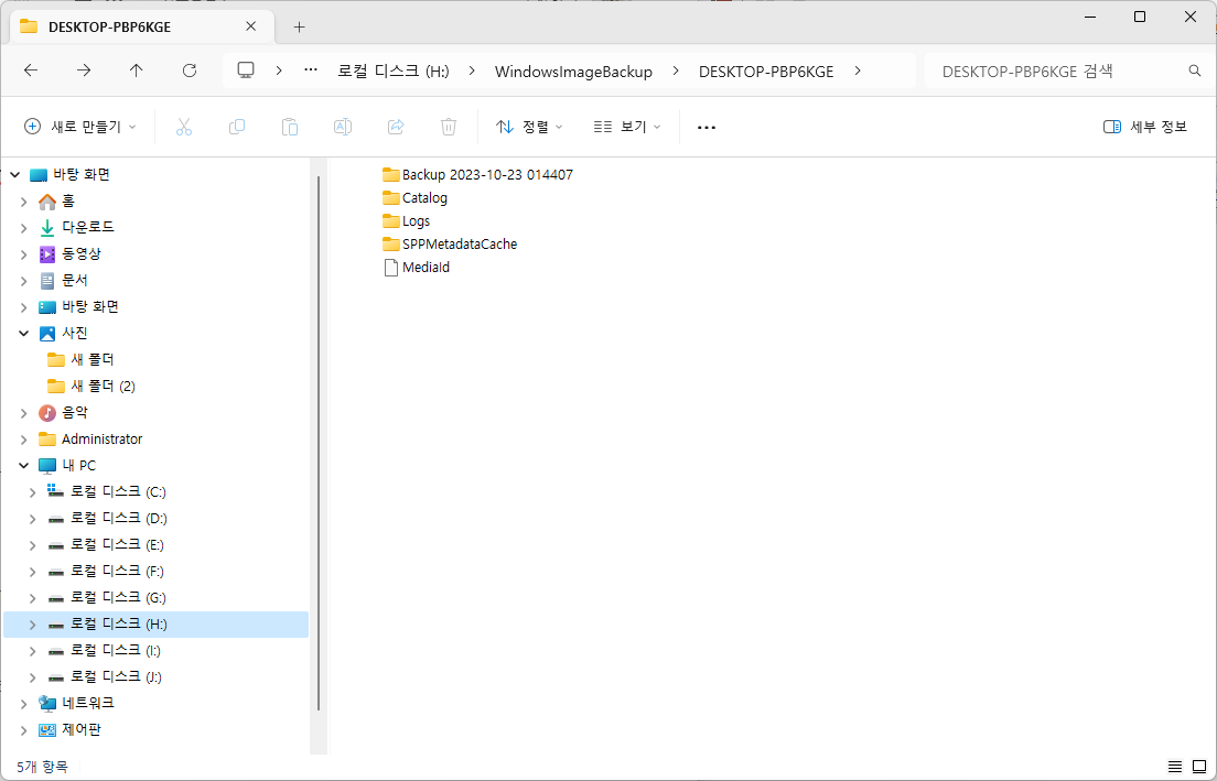 H 드라이브에 백업 파일이 잘 만들어졌습니다...ㅎㅎ