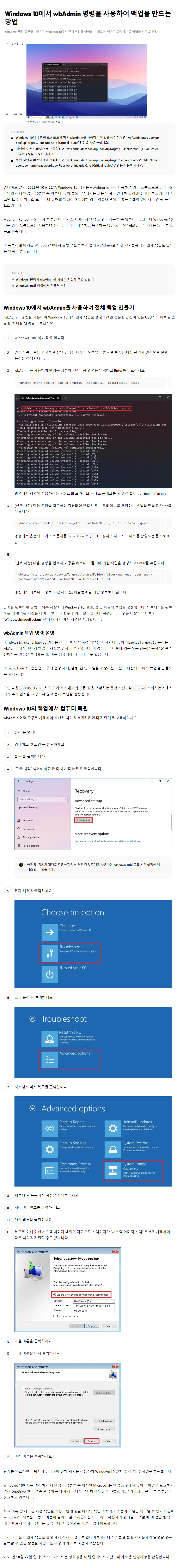 wbAdmin 명령을 사용하여 윈도우에서 바로 백업을 진행하는 방법입니다..