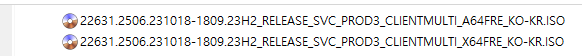 아래 파일은 UUP dump에서 만든 스크립트를 이용해서 MS에서 배포하는 파일(ESD, cab파일)로 만든 순수 ISO 파일입니다.