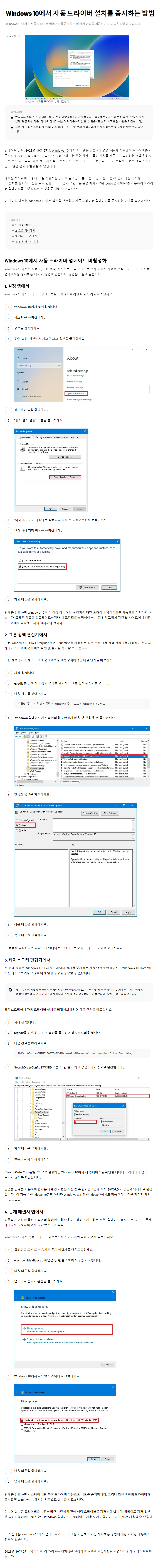 자동업데이트에서 드라이버 업데이트를 중지하는 방법입니다...