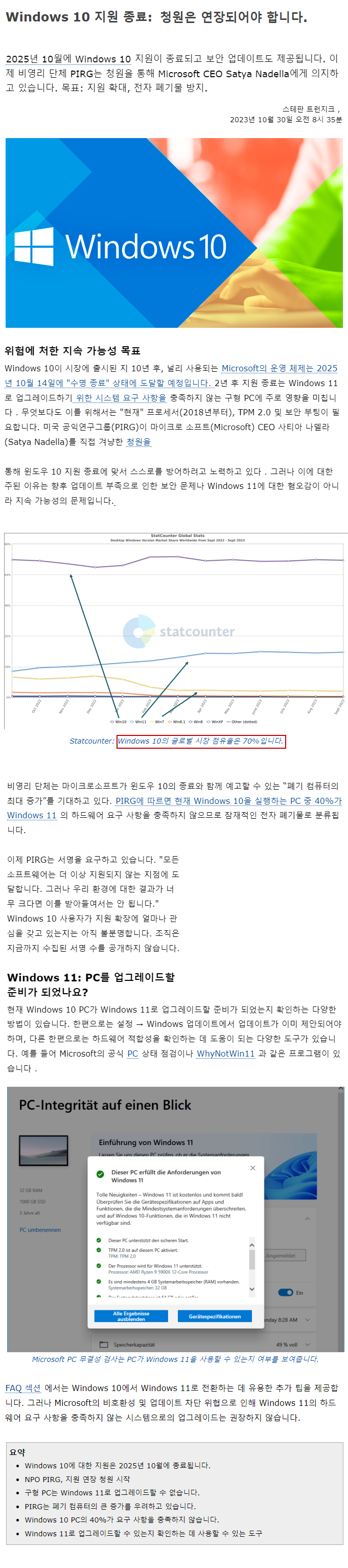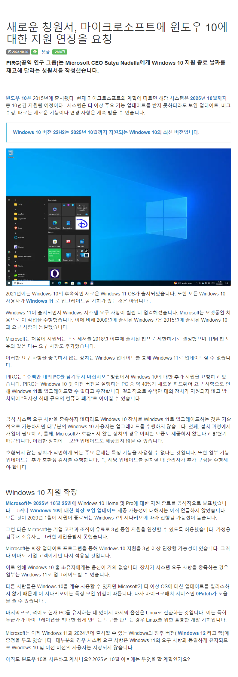 외국 비영리 단체에서 Windows 10 지원 종료(2025년 10월 14일)에 대한 지원 연장 청원을 하고 있다고 합니다...ㅎ