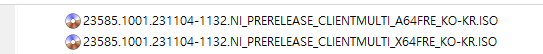 아래 파일은 UUP dump에서 배포하는 스크립트를 이용해서 MS에서 배포하는 파일(ESD, cab파일)로 만든 순수 ISO 파일입니다.