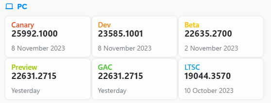 ○ 개발자 채널 [Canary] = Windows 11 : 빌드 25992.1000 (= 참가자 빌드)