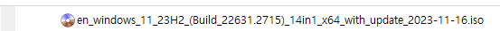 | Windows 11, 23H2 UUP + 누적 업데이트 통합 [22631.2715] [배포 종료] (0) | 2023.11.15 |