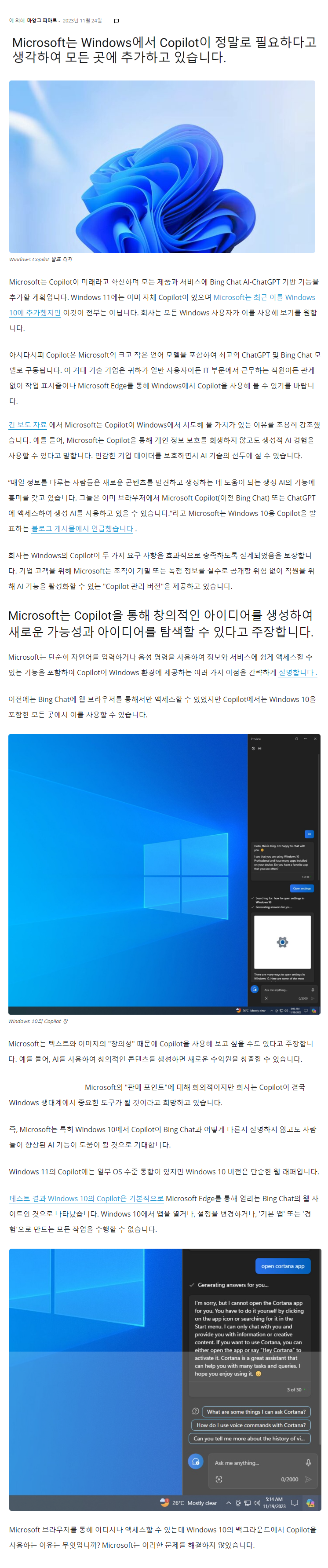 코파일럿은 이제 윈도우와 떼놓을 수 없을 정도입니다...