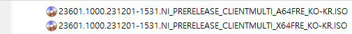 아래 파일은 UUP dump에서 배포하는 스크립트를 이용해서 MS에서 배포하는 파일(ESD, cab파일)로 만든 순수 ISO 파일입니다.