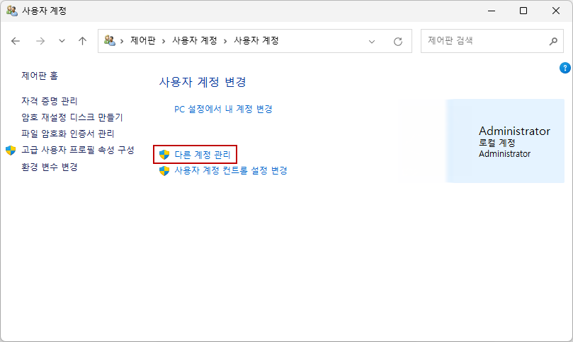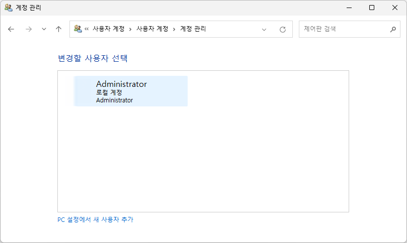 보통 임시 계정으로 만들고 나서 Administrator 계정을 새로 만들어서 사용하는 경우가 있습니다.