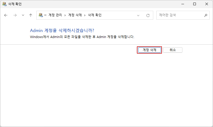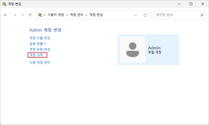 사용하지 않는 임시 계정을 삭제하는 방법은 아래와 같이 간단합니다.