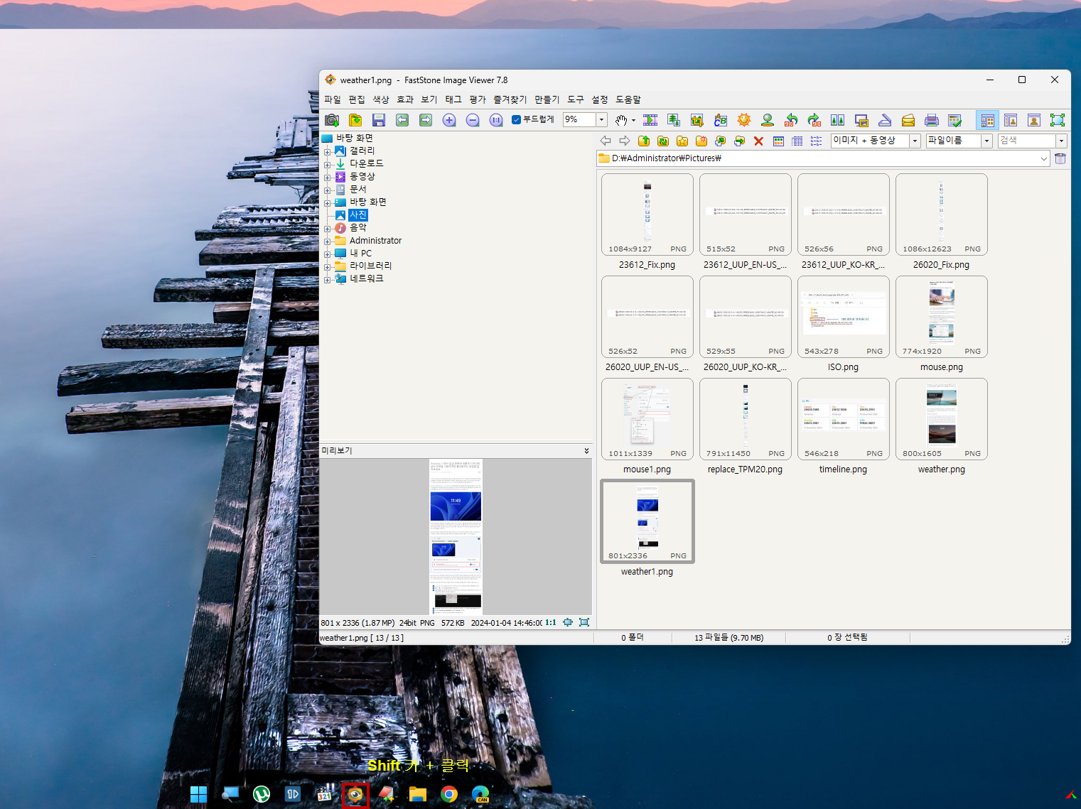 [Shift] 키를 누른 상태에서 작업표시줄의 단축 아이콘을 클릭합니다...