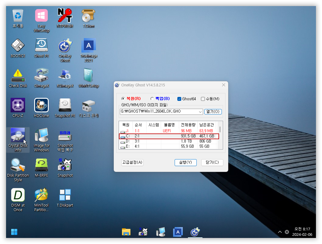 이제 고스트 프로그램에서 윈도우가 설치된 드라이브가 자동으로 잘 잡힙니다...