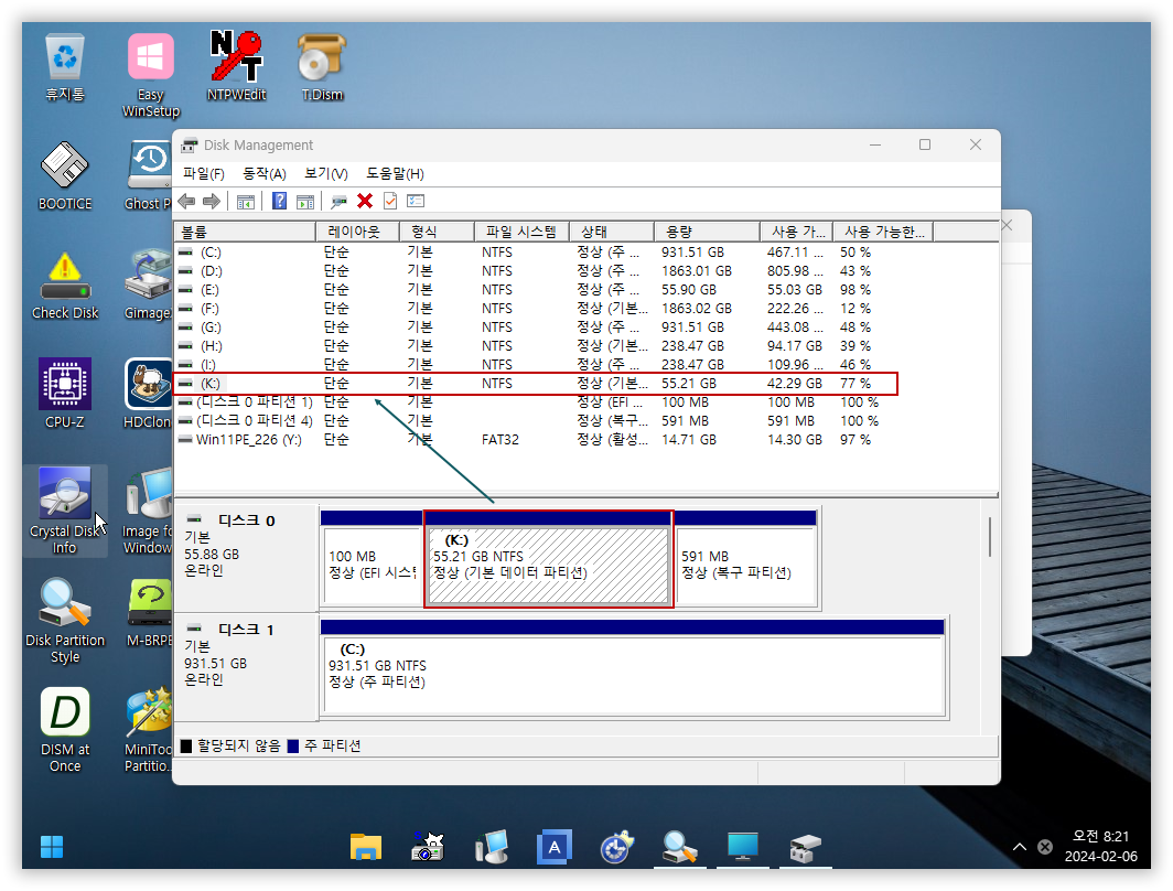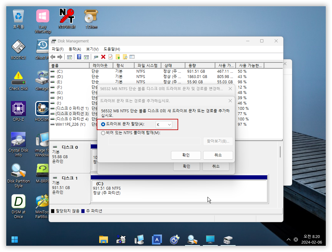 일단 드라이브 문자는 K로 할당되었습니다.