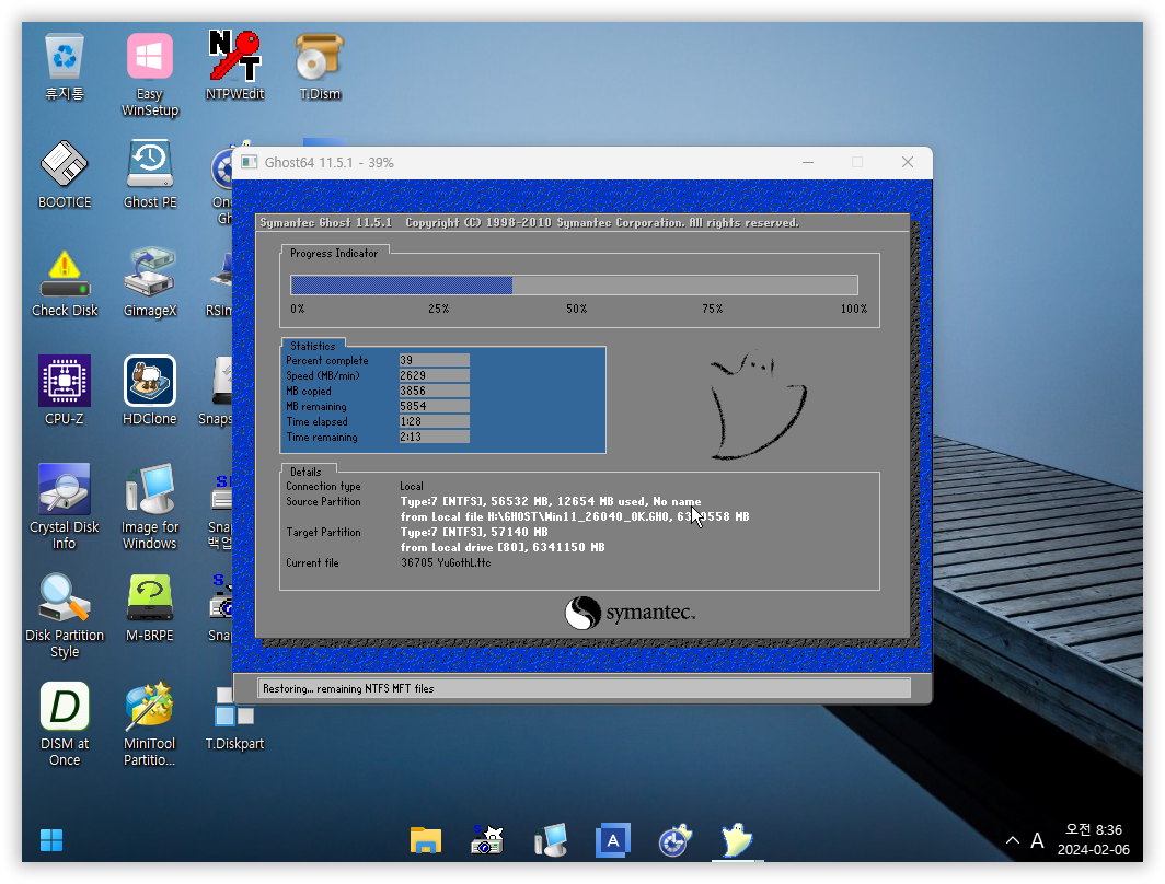 이제 백업해둔 윈도우를 새로 수동으로 만들어준 파티션에 복원해줍니다....