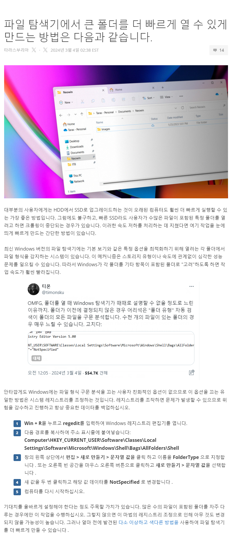 | [1단계 필수] Windows 10 / 11 딜레이 없이 탐색기를 빨리 여는 방법 1 (7) | 2024.02.28 |