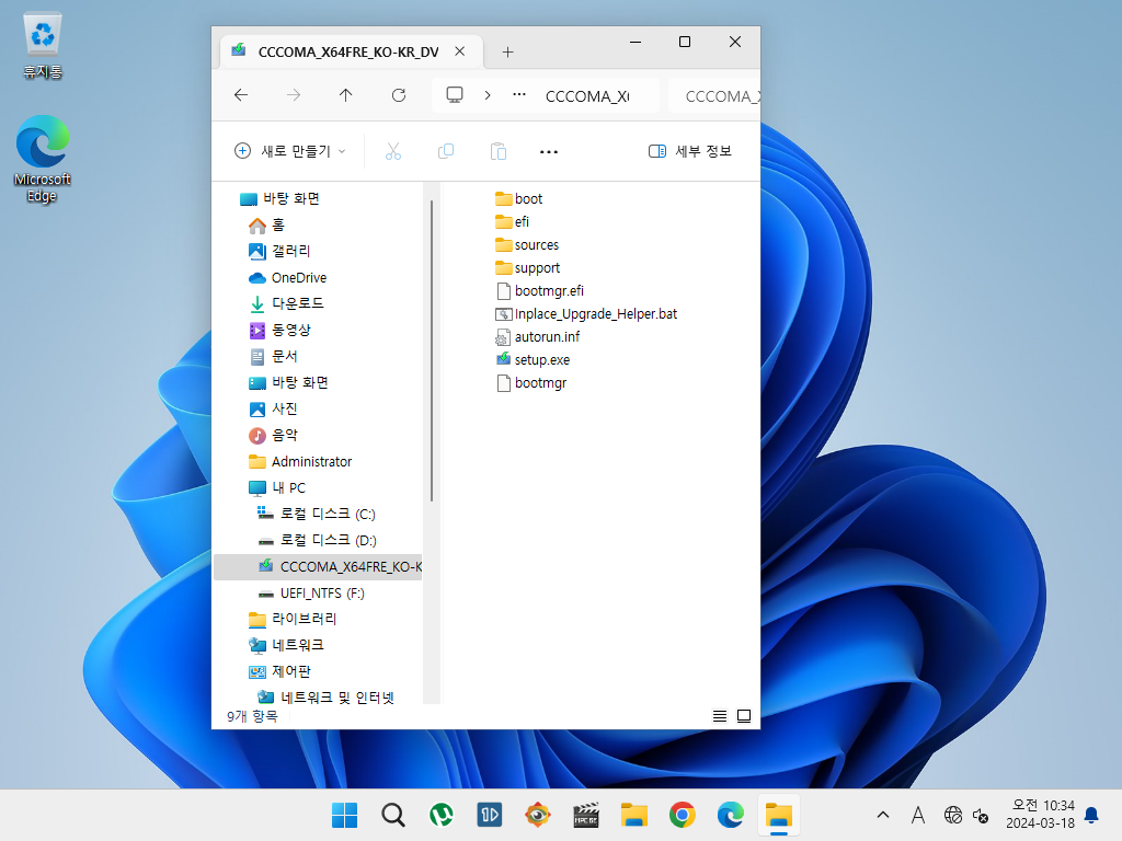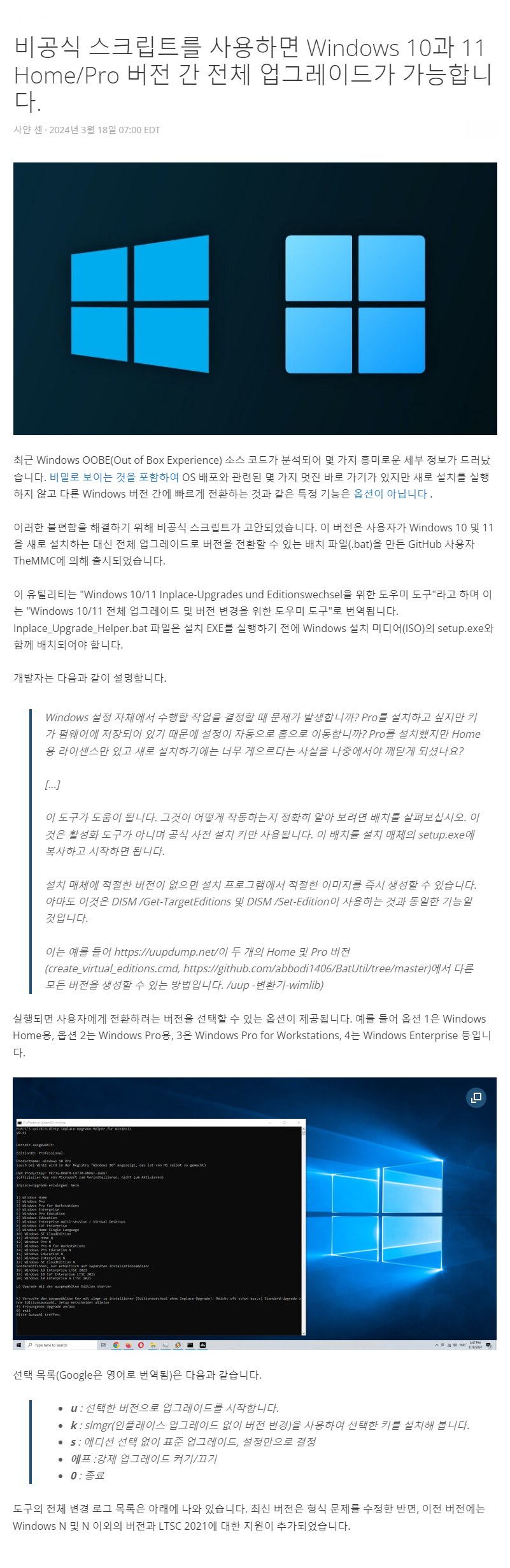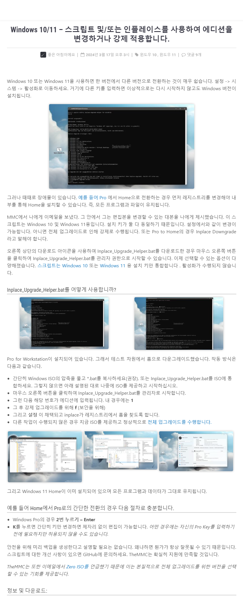 inplace_upgrade_Helper.bat 파일을 관리자 권한으로 실행합니다.