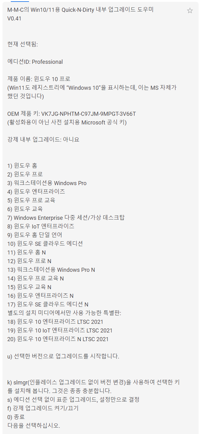 그냥 변경하고자하는 에디션의 제품키를 넣어주는게 가장 좋습니다.
