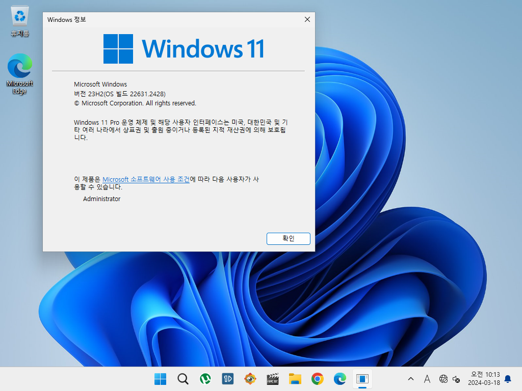 Pro 에디션 이 설치된 상태입니다.