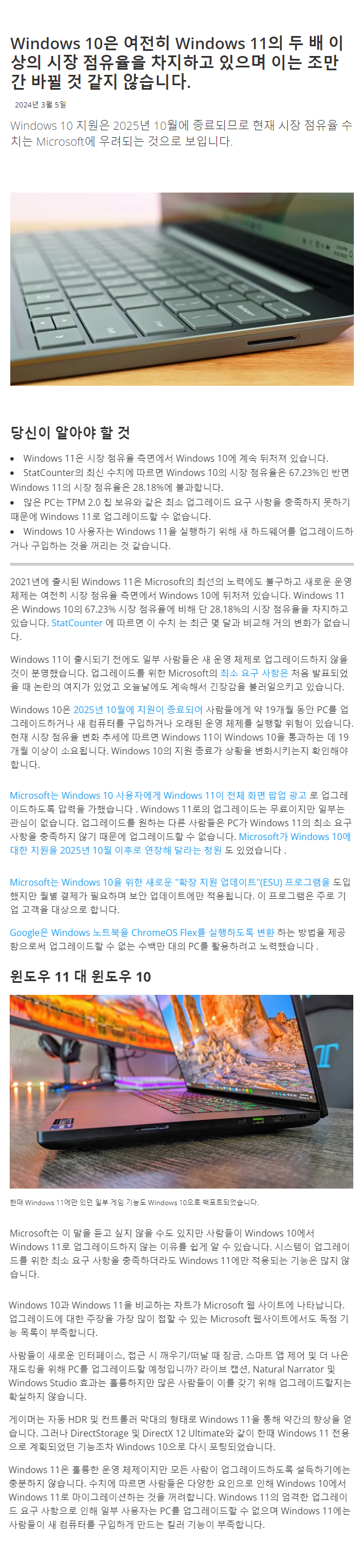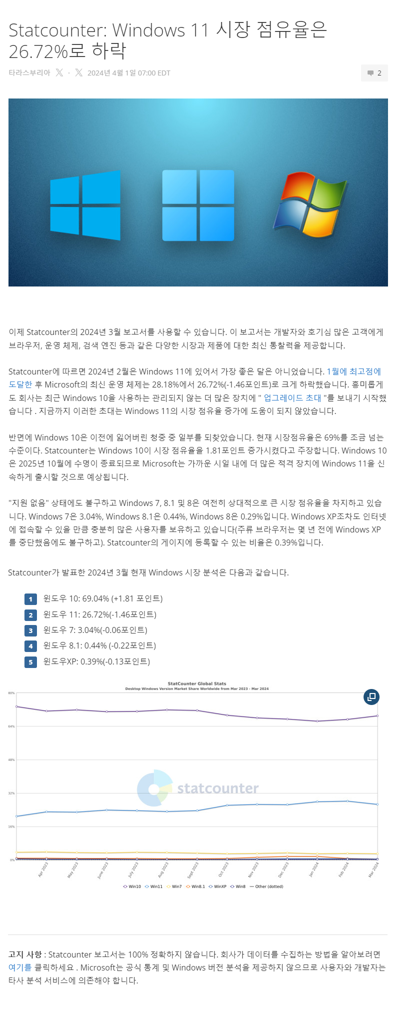 내년 10월에 Windows 10의 서비스가 지원 종료되는 시점에서 아직 Windows 10의 사용자는 많군요.ㅎ