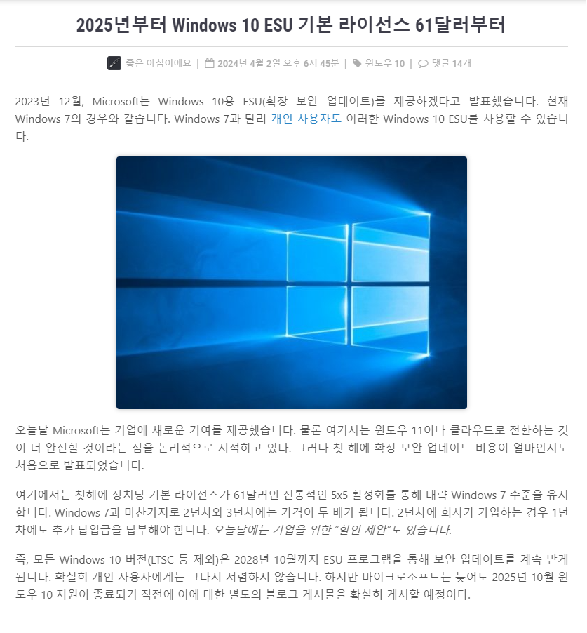 | Microsoft는 Windows 10 지원 종료에 대한 전체 화면 광고를 표시하기 시작 (6) | 2024.04.10 |