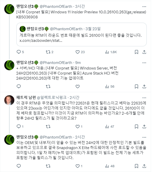 빌드 26100이 RTM일 될 가능성이 높습니다.
