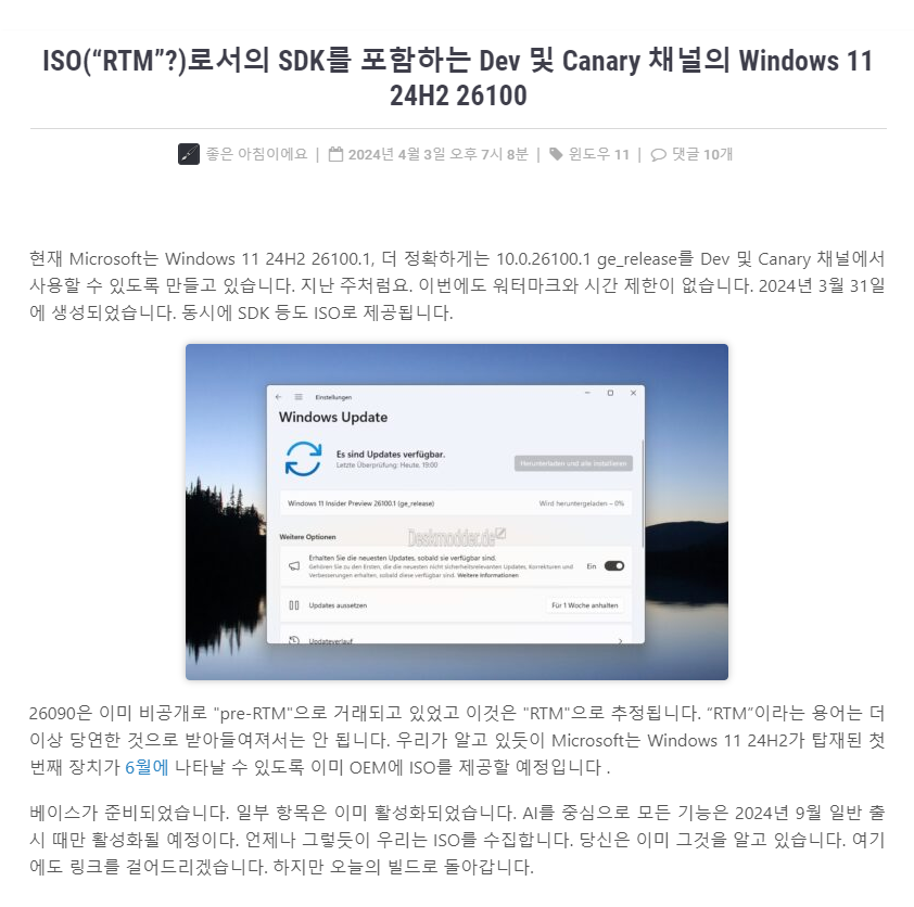 | Windows 11, 24H2의 RTM은 이제 시작일 뿐입니다. (3) | 2024.04.05 |