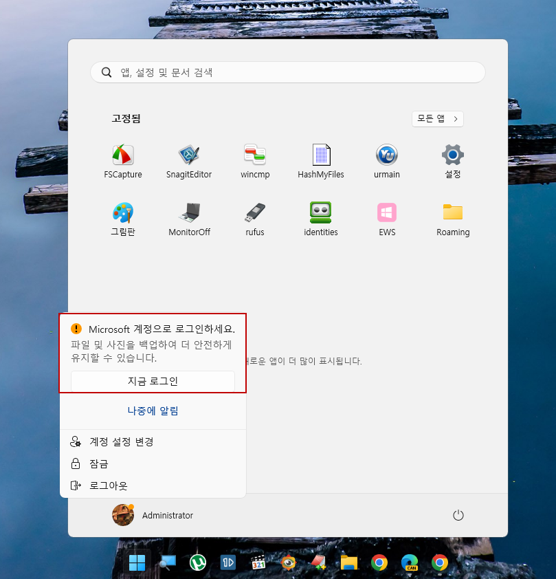 최근에 생긴 MS 로그인 알림은 위 설정에서 끌 수가 있네요..ㅎ