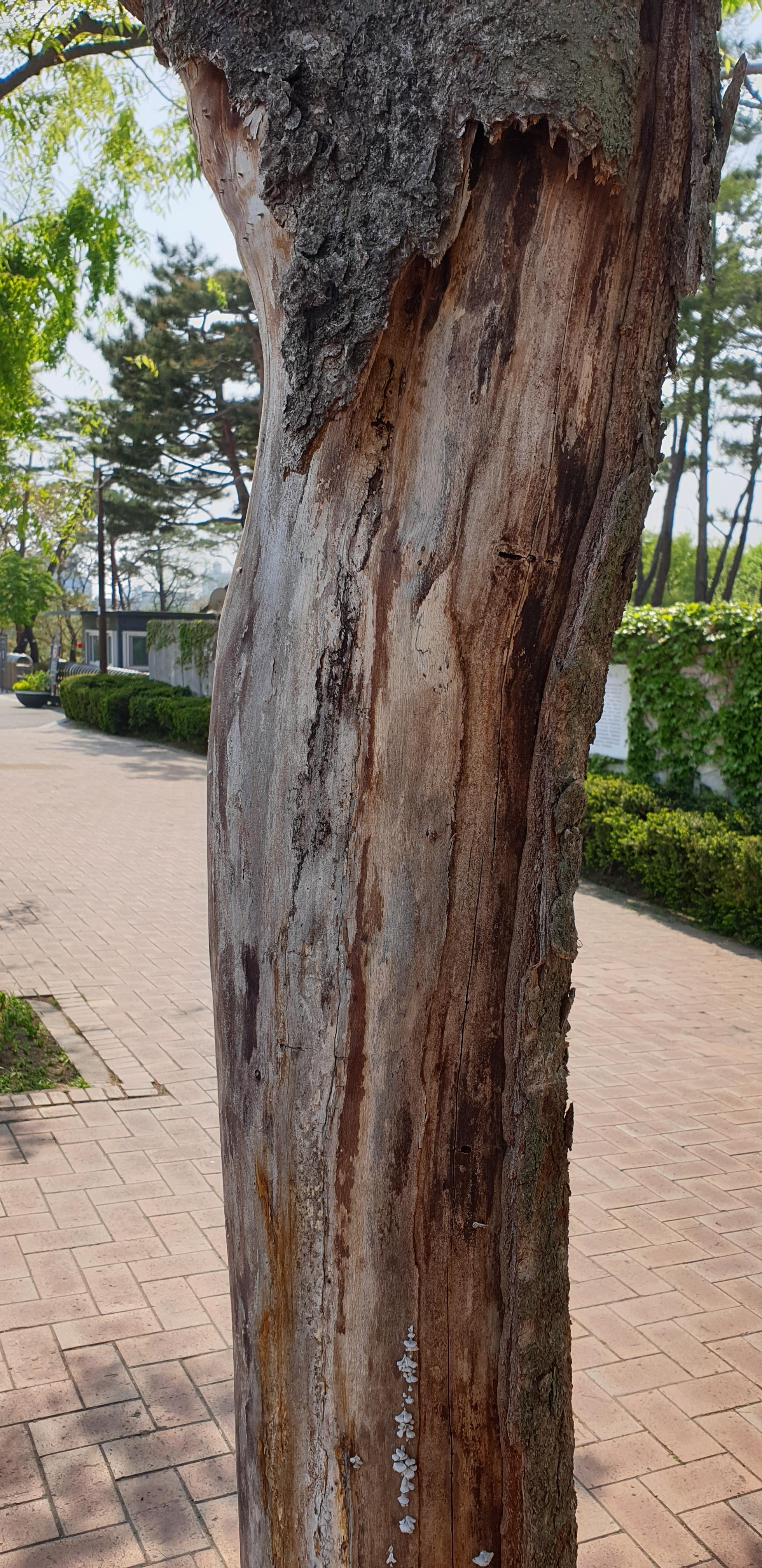 껍질이 거의 다 벗겨졌는데도... 살아있는 나무 ㅎㅎ