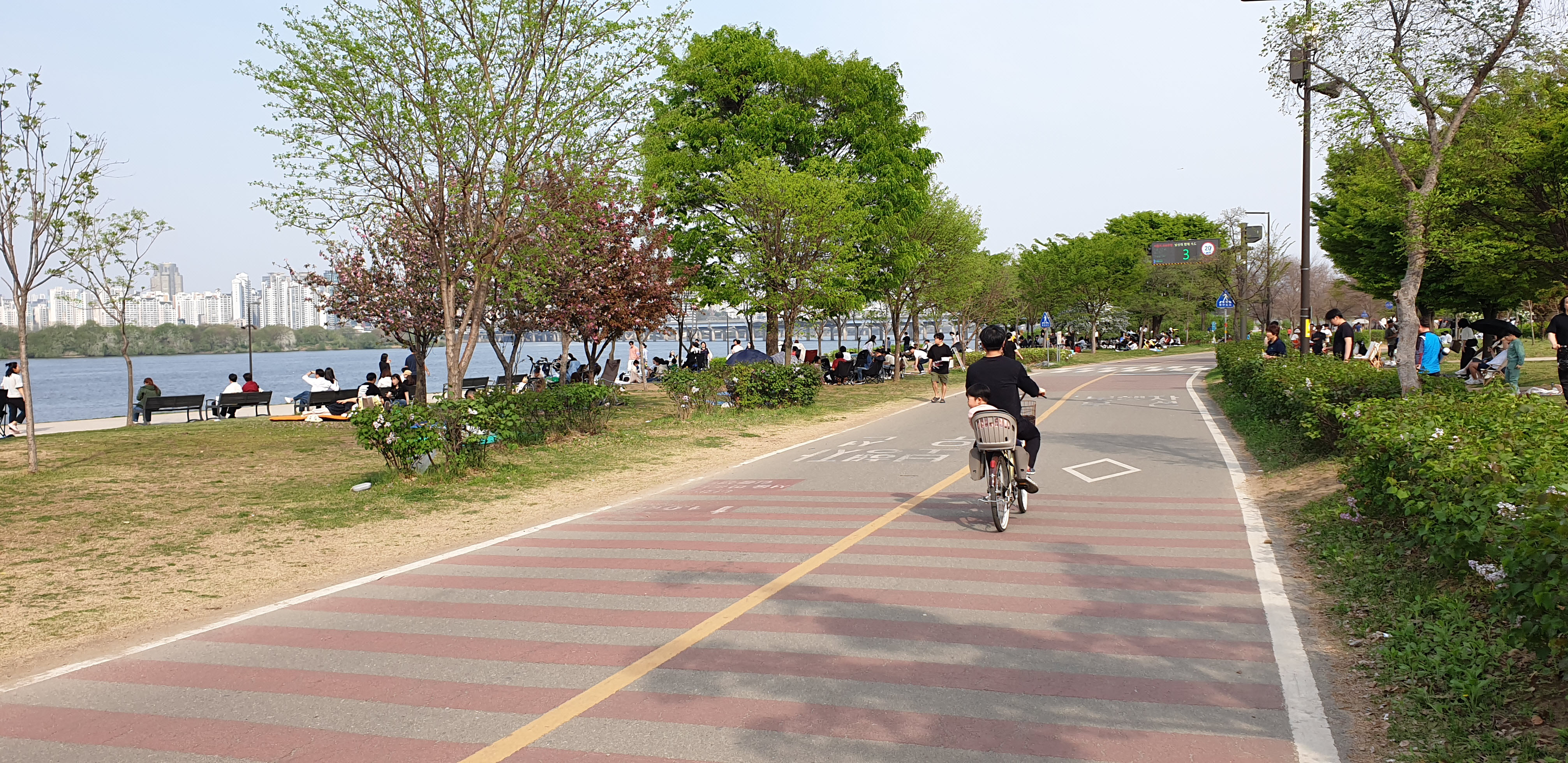 아주 많이들 빌려타고 다닙니다... (양화대교에서 여의도 63빌딩까지 왔다갔다 하는 모양입니다...)