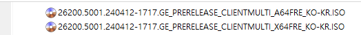 아래 파일은 UUP dump에서 배포하는 스크립트를 이용해서 MS에서 배포하는 파일(ESD, cab파일)로 만든 순수 ISO 파일입니다.