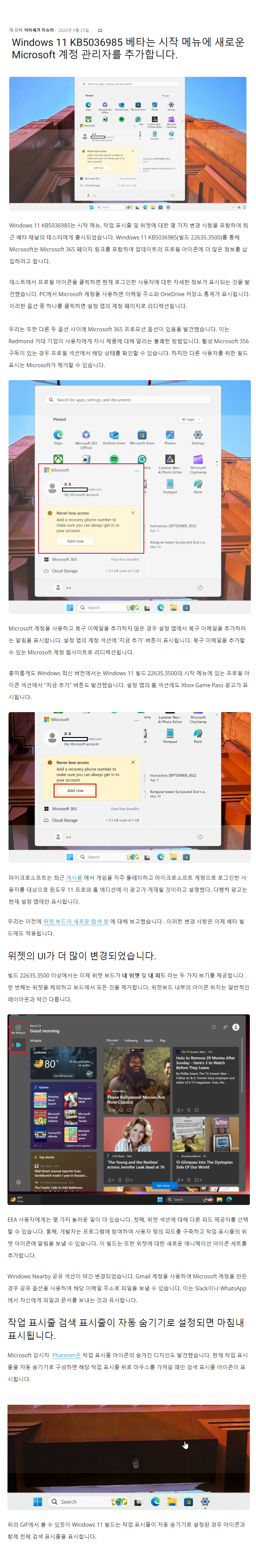 | Windows 11, 인사이드 프리뷰 빌드 앞으로의 진행 방향 (2) | 2024.04.16 |