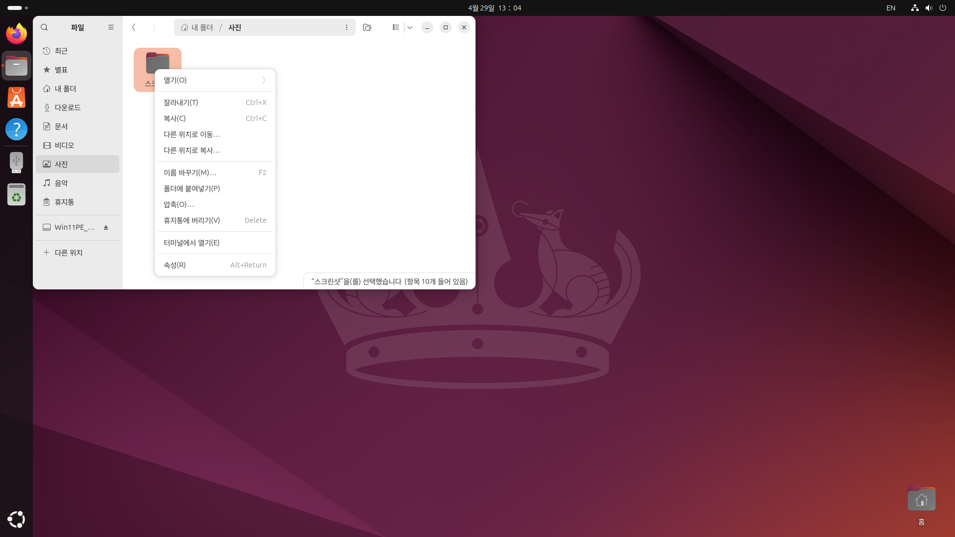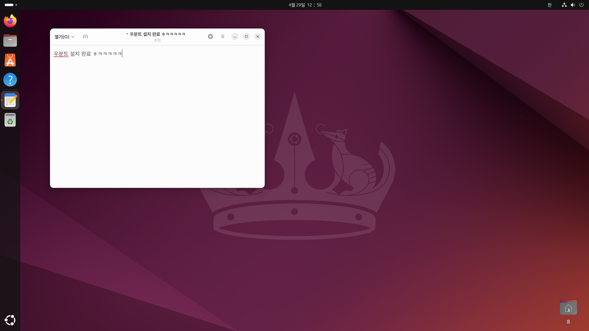 오늘 우분투 리눅스를 한번 설치해봤습니다...