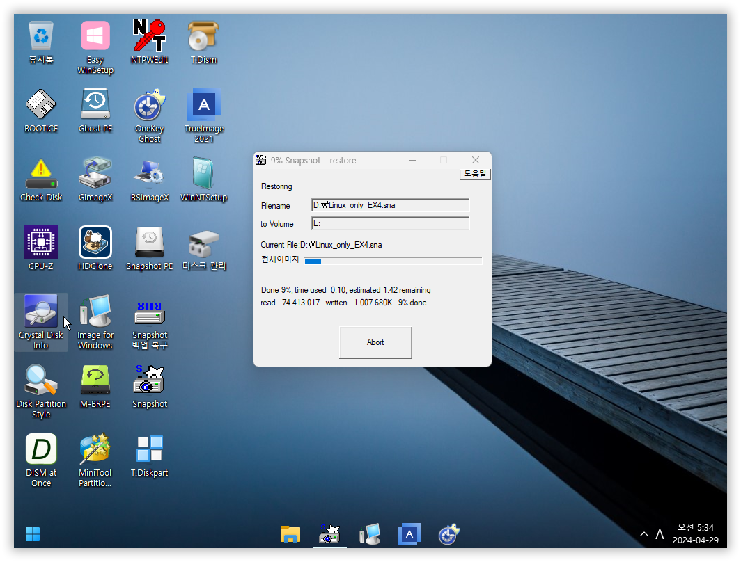 PE에서 Linux 파티션 백업 복원도 잘 됩니다...
