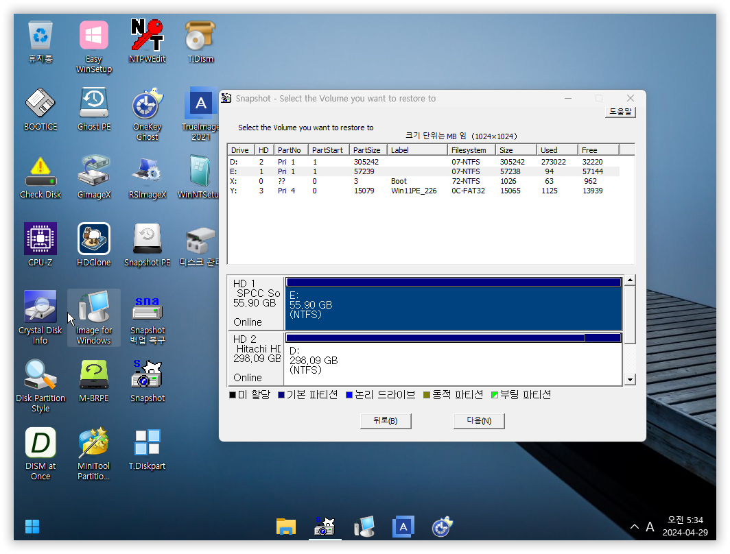 TrueImage로 백업 복원이 실패해서 SnapShot 프로그램으로 백업 복원을 진행했네요..ㅎ