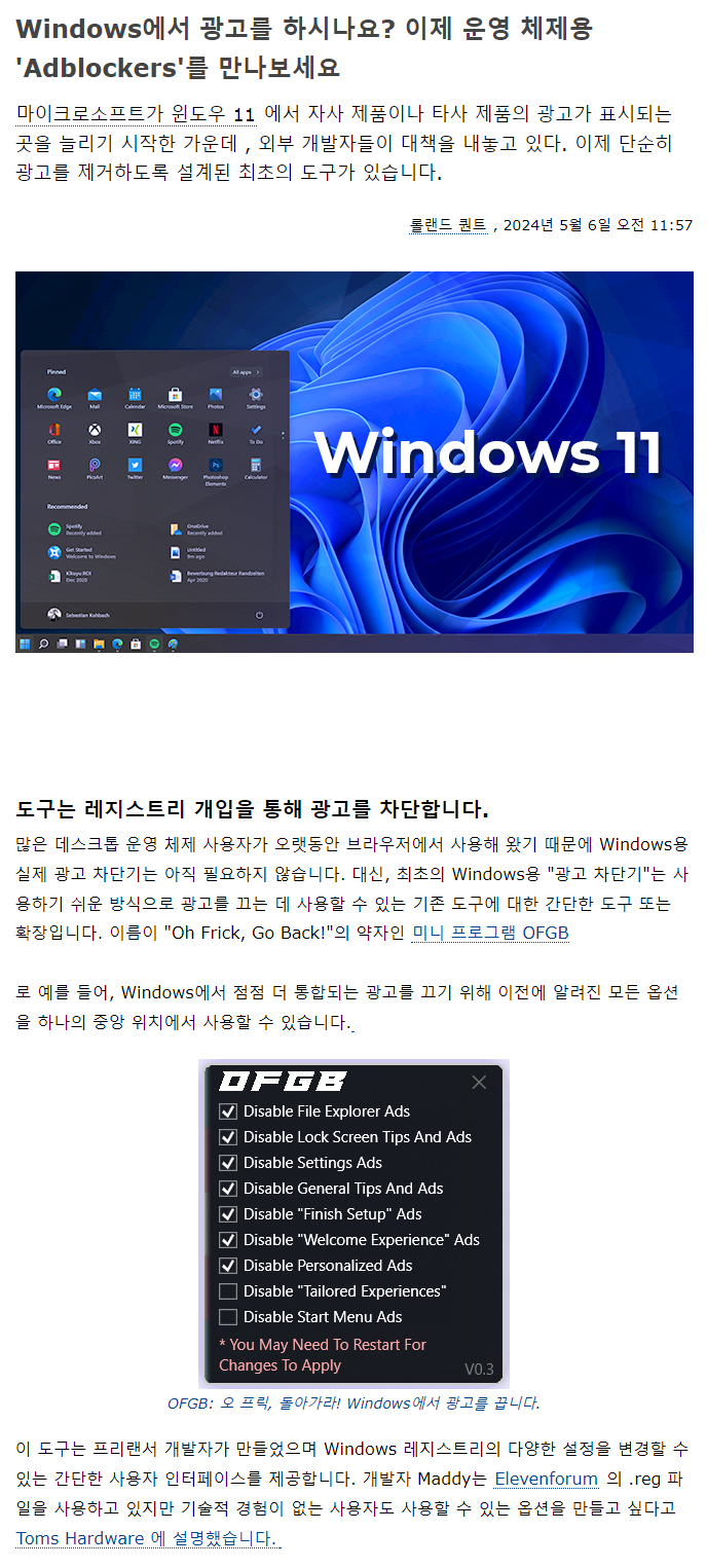 | Windows 11 광고를 비활성화 (Winpilot) (0) | 2024.05.05 |