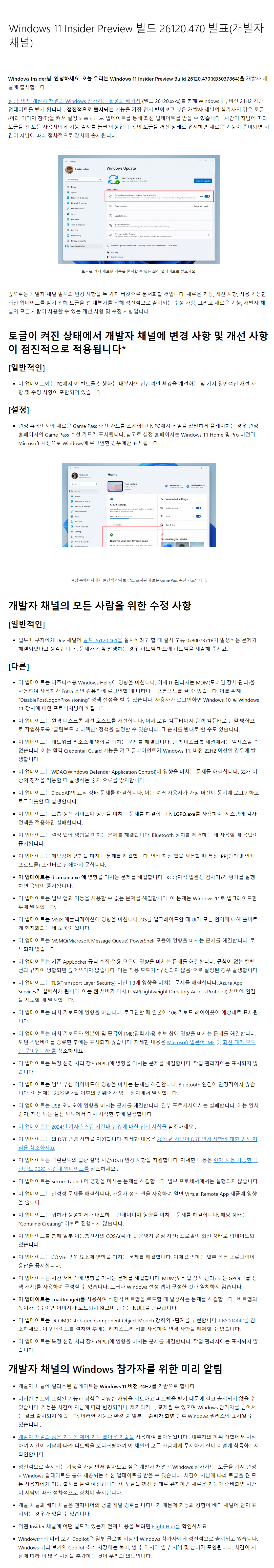 2024-05 Windows 11 Version 24H2 RTM, 빌드 26100에 대한 누적 업데이트(KB5037864) : 26100.x → 26100.470
