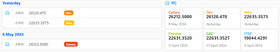 24H2 RTM과 Dev 채널 빌드는 같은 누적업데이트 파일을 사용합니다.