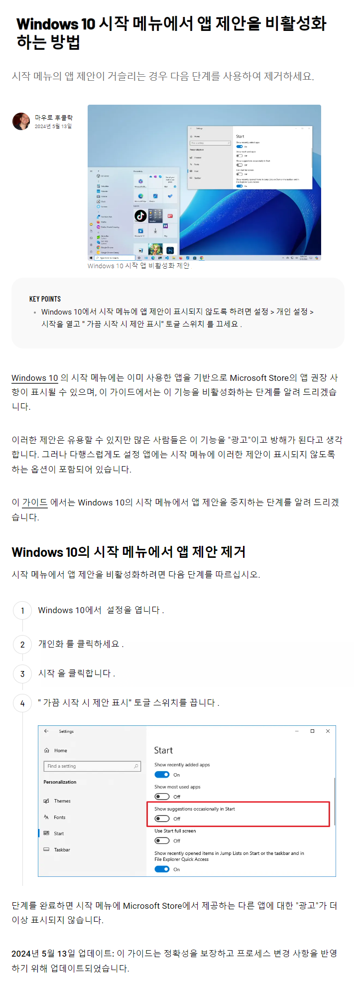 | [1단계 선택] Windows 11 시작 메뉴에서 '권장' 섹션을 비활성화하는 방법 (0) | 2024.05.14 |