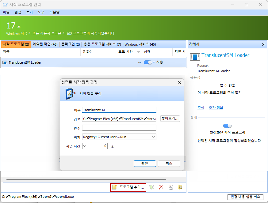 아래처럼 시작 프로그램에 등록해주고 재부팅하면 됩니다.