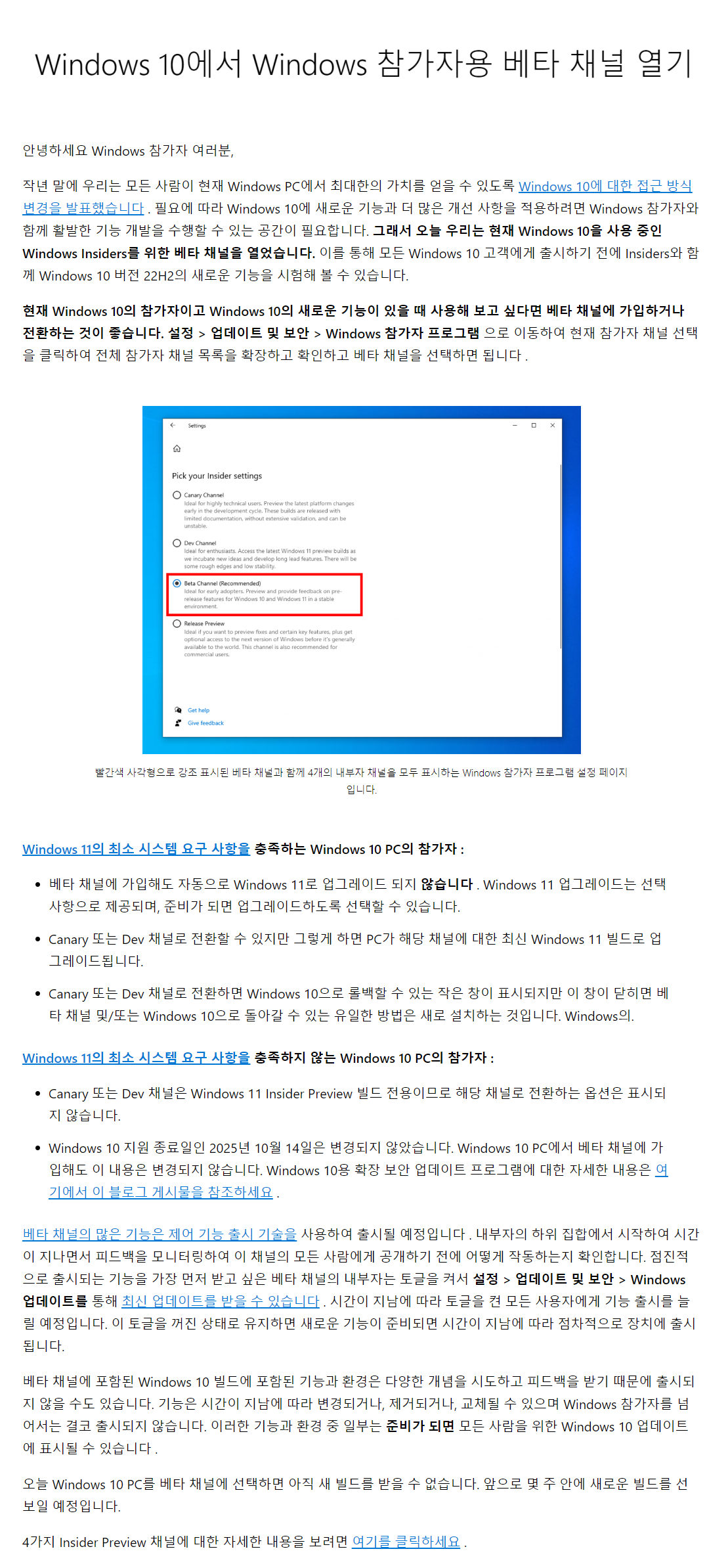 Windows 10이 내년 10월 14일 서비스 종료를 앞두고,,,
