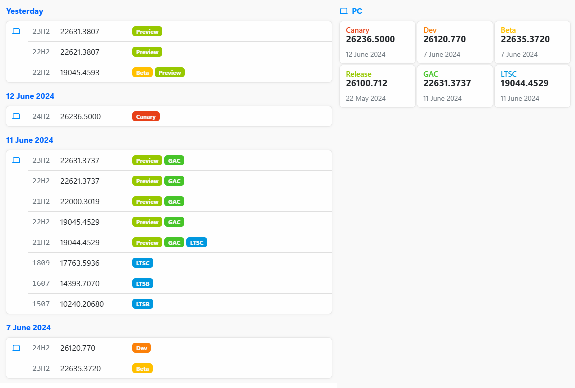 ○ 개발자 채널 [Dev] = Windows 11 : 빌드 26120.770 (= 참가자 빌드)