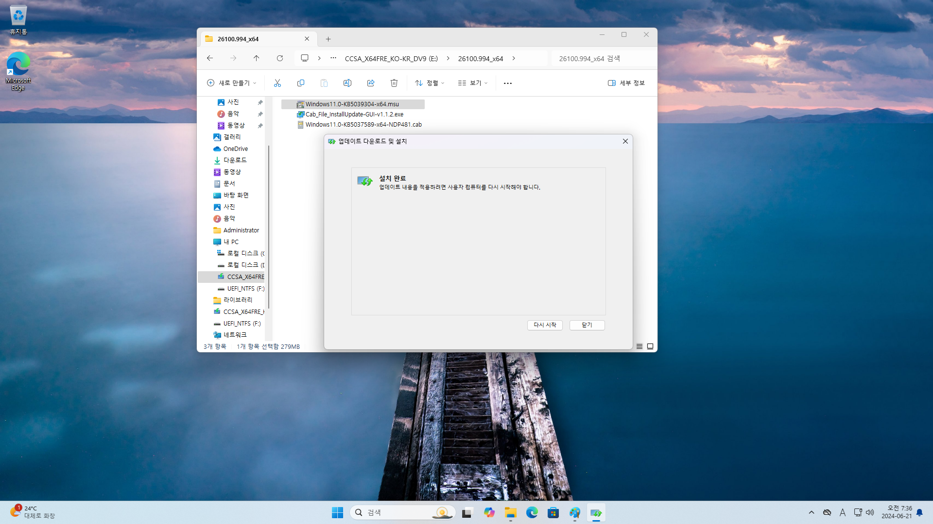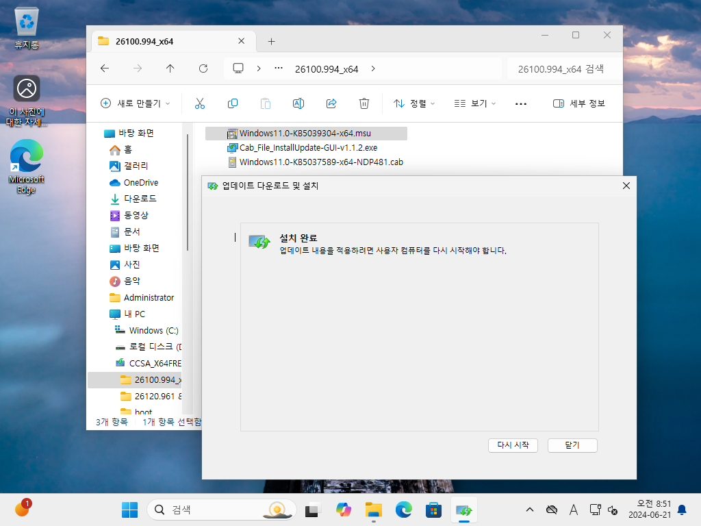 [방법2] 26100.961 → 26100.994 수동업데이트