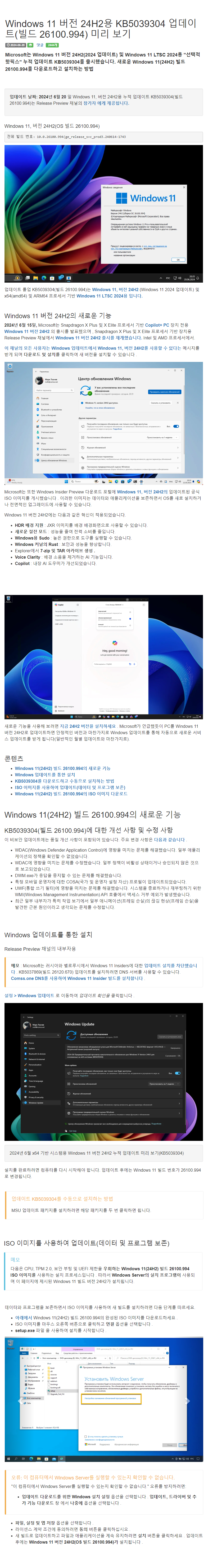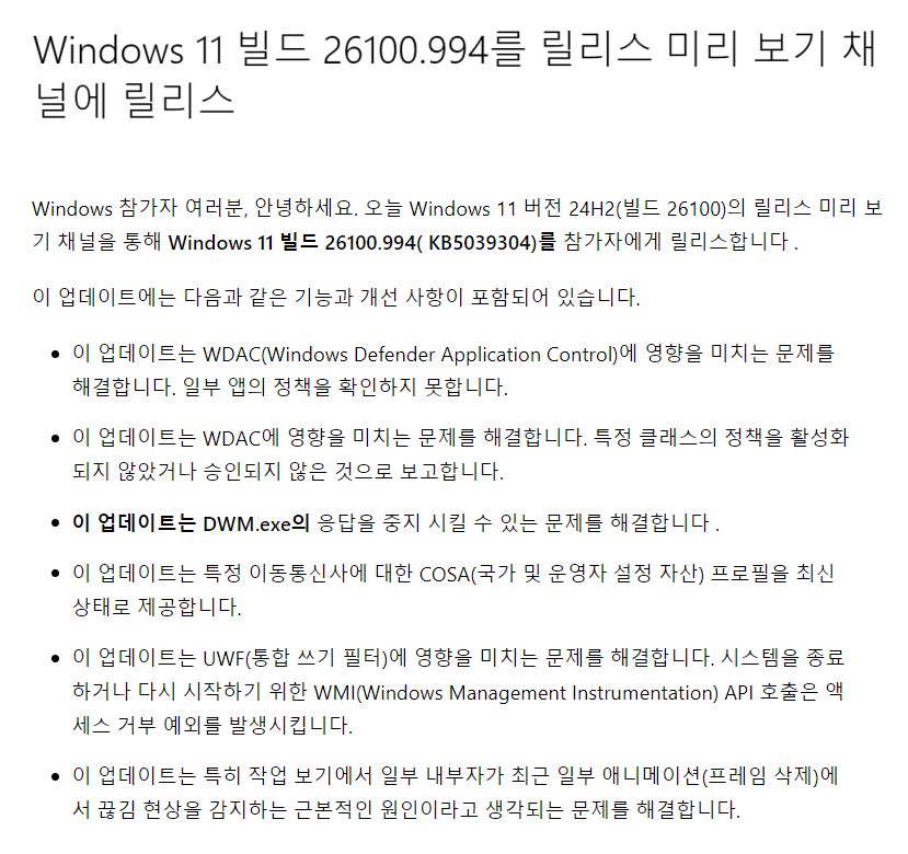 [자동업데이트에는 26100.994 업데이트가 뜨지 않습니다.ㅠ]