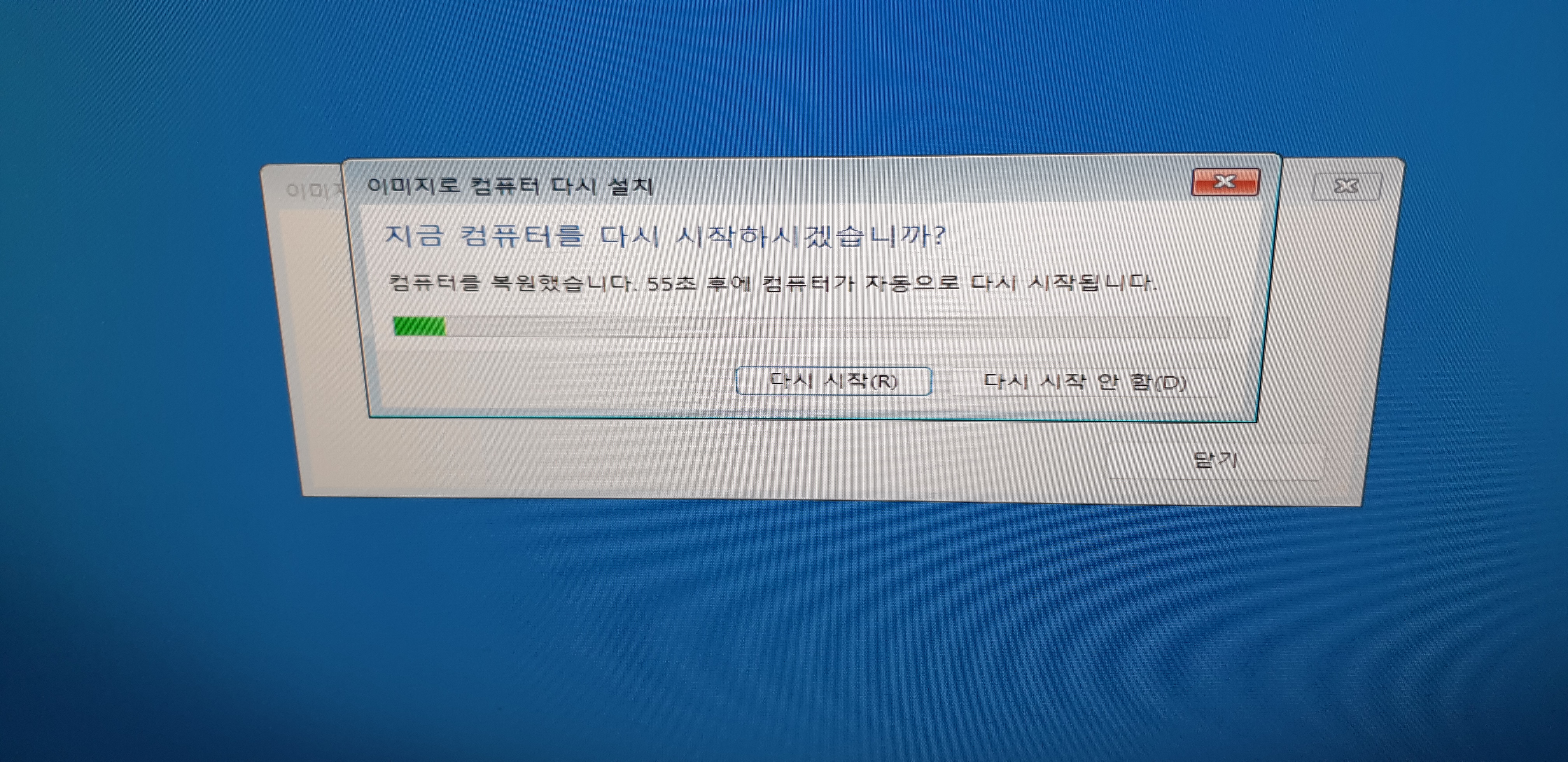 백업 완료후에 [다시 시작] 버튼을 눌러서 다시 시작합니다..