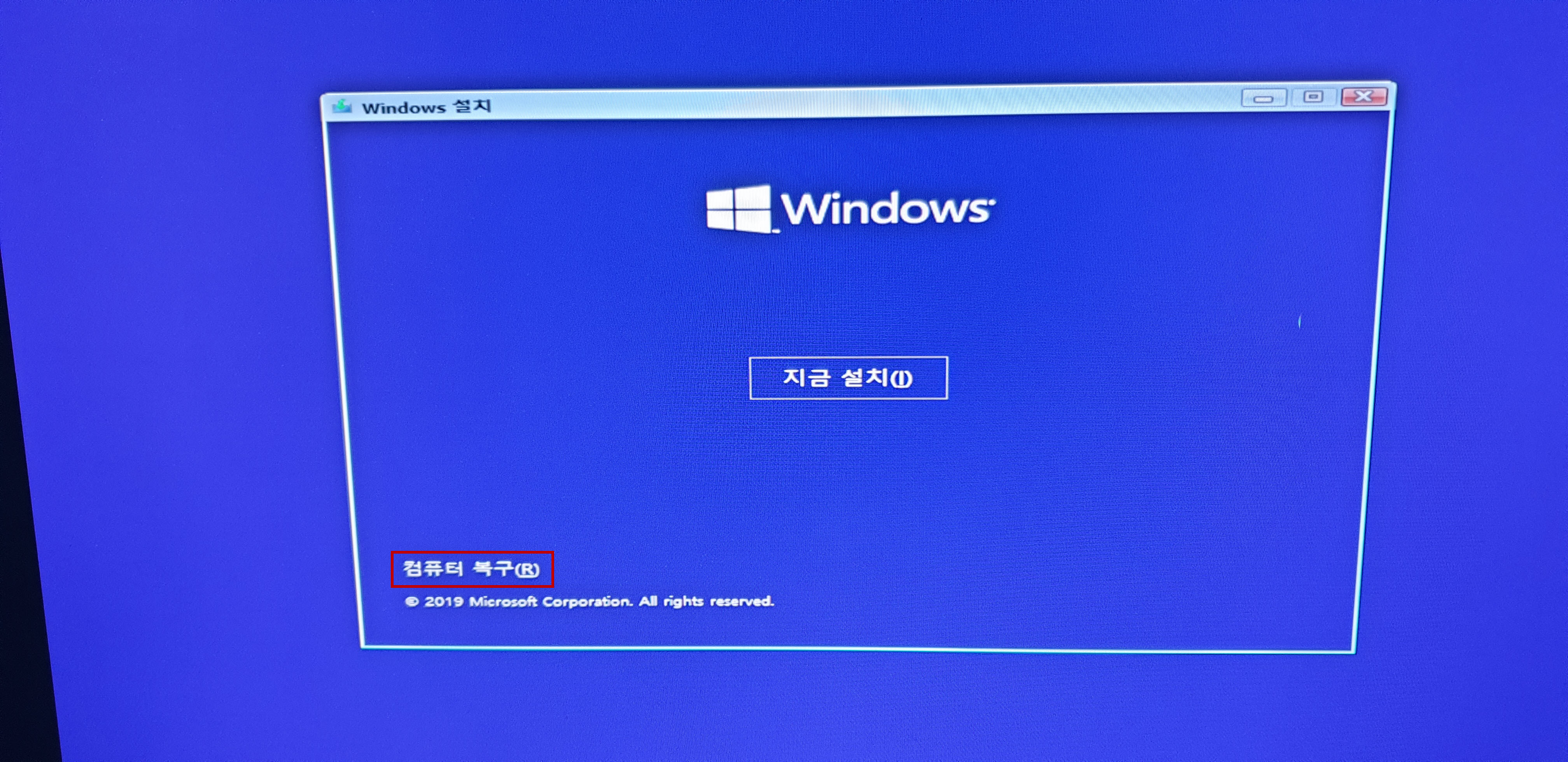 윈도우 10은 파란화면의 왼쪽 모서리에 보시면 [컴퓨터 복구] 링크가 있습니다. 그걸 누르시면 됩니다.