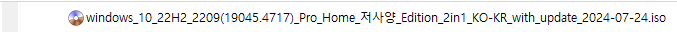 | Windows 10 22H2 2209(빌드 19045.4651) Pro Home 저사양 에디션 2in1 [배포 종료] (3) | 2024.07.09 |