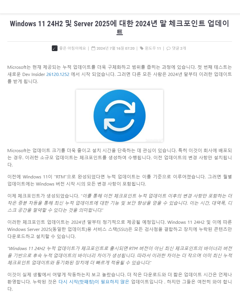 그냥 예전처럼 누적업데이트로 가면 좋을텐데요....