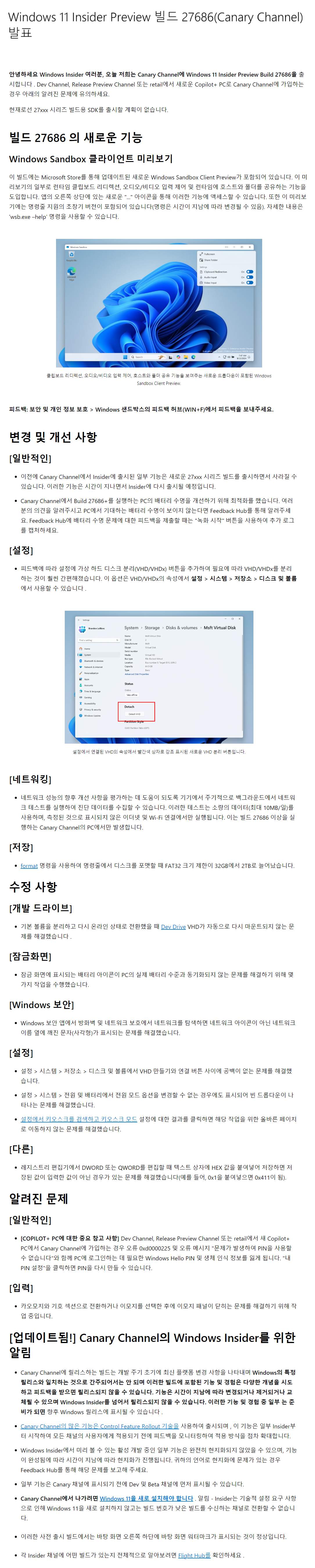 오랫동안 기다렸던, 27xxx 빌드라서 오늘 바로 설치해봤습니다...ㅎ