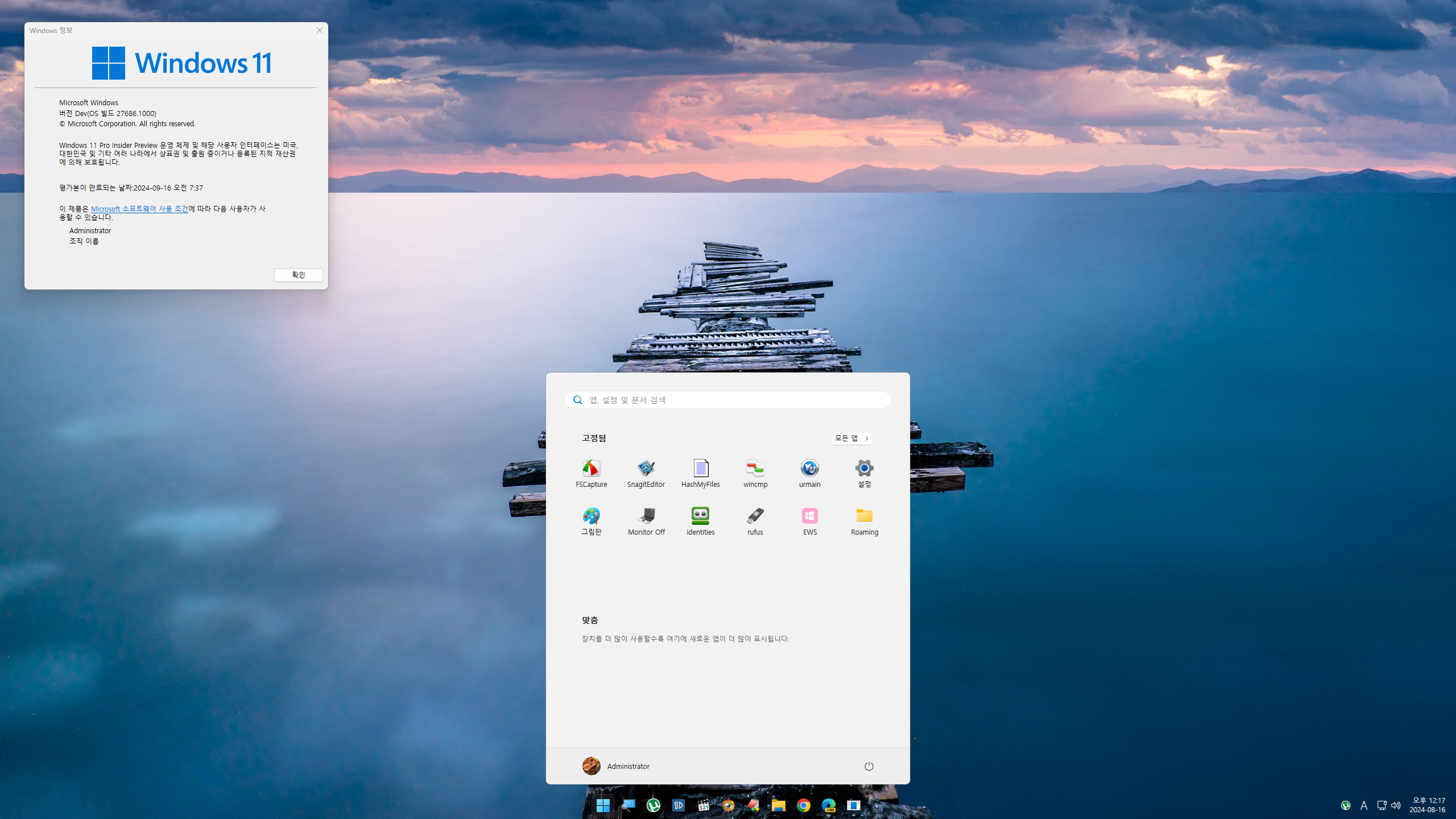 winver 정보 화면에서 버전명이 Dev로 표시되구요...