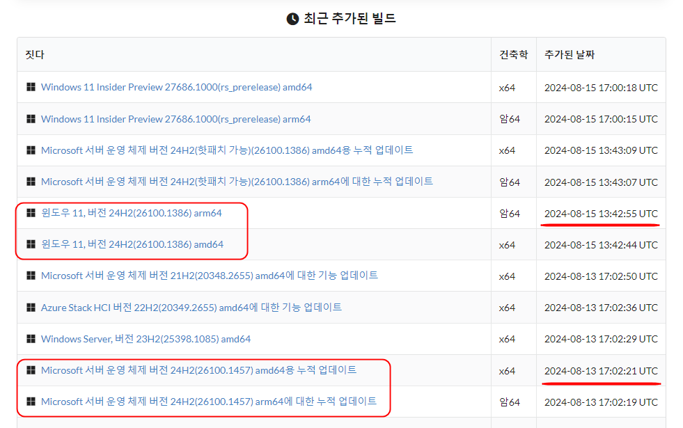 8월 월별 보안 업데이트에서 26100.1457이 이미 배포되었기 때문에 1386은 아무 의미 없는 빌드가 되었습니다.