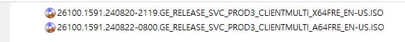 ○ 일반 사용자 채널 = Windows 11 24H2 RTM : 빌드 26100.1591 (= 일반 사용자 빌드)