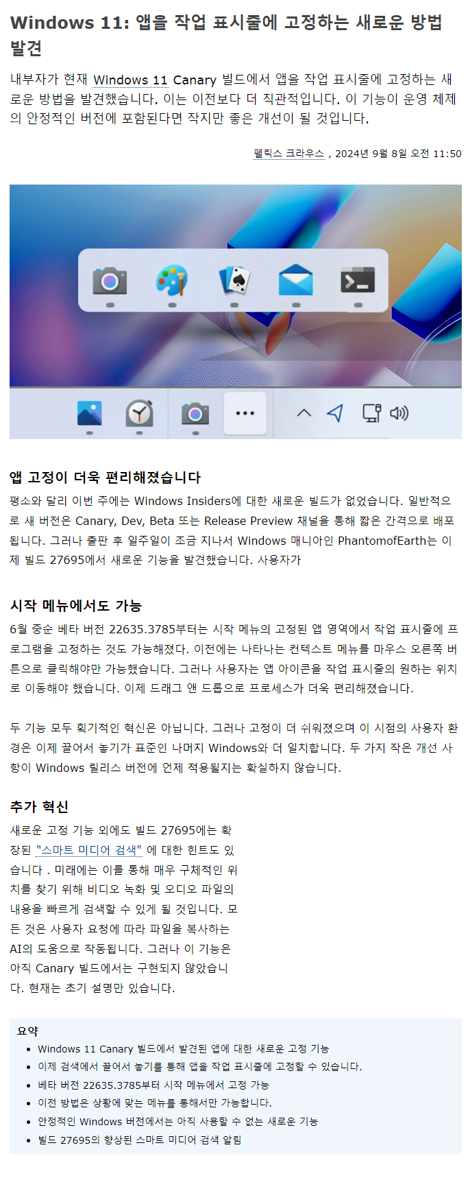 개발자들은 Windows 11 23H2 및 24H2인 것처럼 여전히 개별적으로(베타/카나리) 작업하는 것 같습니다. 이에 대한 Phantom의 비디오는 다음과 같습니다.